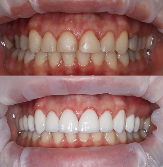 Зазвичай такого не роблять) Та і нема в цьому потреби. Конструктивно накладки не можуть щільно приклеїтись до 6-7-8 зубів, і навіщо вам це потрібно? Вініри ставлять на видову частину, яка помітна при посмішці.