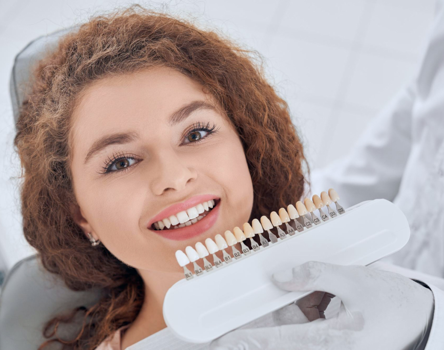 Дуже просто! У нас є спеціальна палітра відтінків, які ми прикладаємо до ваших природних зубів і визначаємо тон, який найбільше підходить.